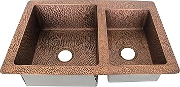 60 40 Kitchen Sink Under Mount Antique Copper Hammered Texture