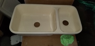 Dupont Corian 971 Almond Undermount Kitchen Double Sink Solid