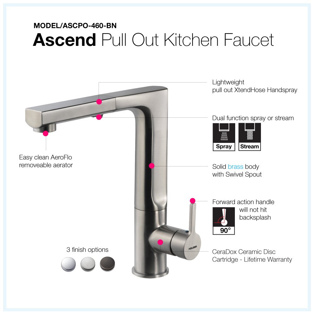 Houzer Ascpo 460 Bn Pullout Kitchen Faucet W Ceradox Technology