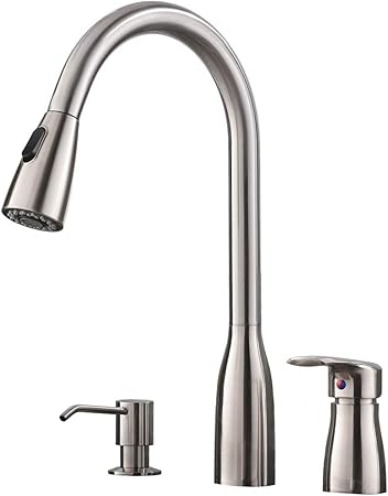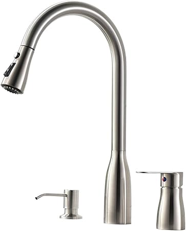 Hotis 3 Hole Kitchen Sink Faucet With Pull Down Sprayer Soap
