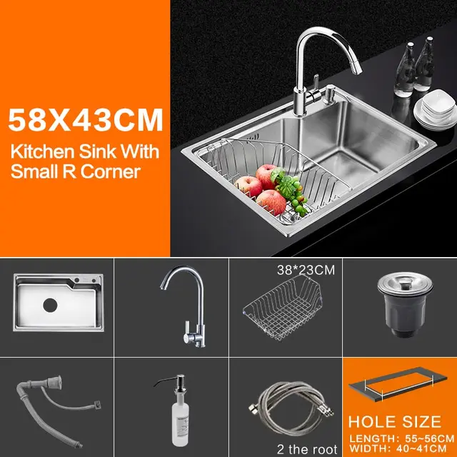 Kitchen Sink Brushed Stainless Steel Sinks Single Bowl Sink