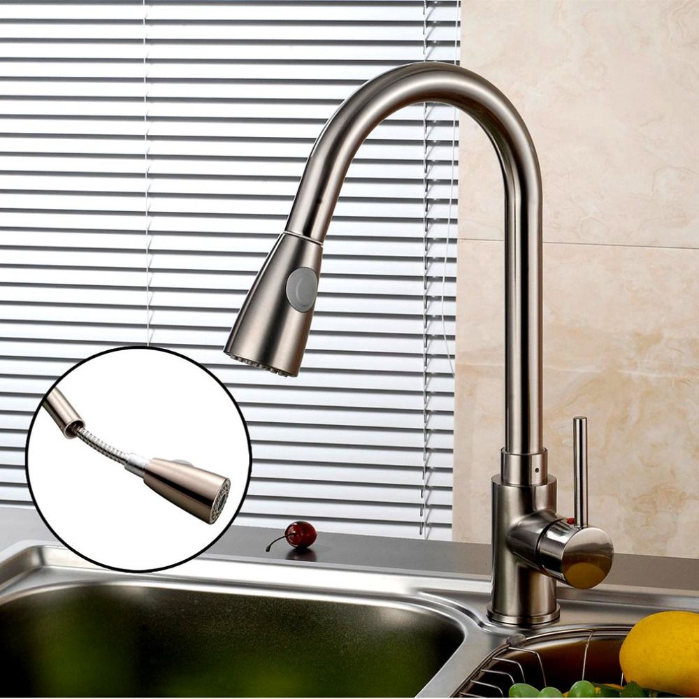 2019 Pull Out Spray Brushed Nickel Finish Kitchen Sink Faucet One