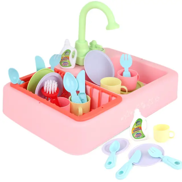 Kid Play House Kitchen Sink Toy Electric Dishwasher Role Pretend