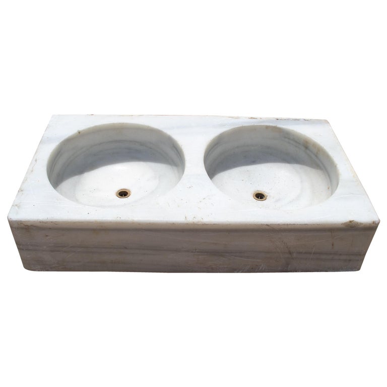 19th Century Antique Hand Carved White Marble Double Basin Kitchen