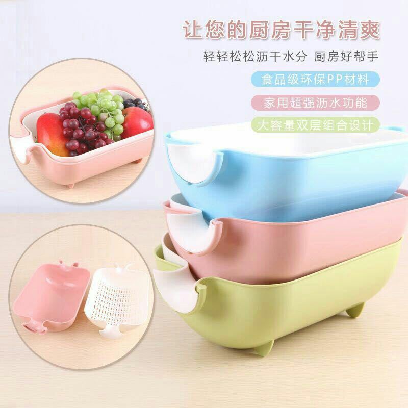 Double Layer Washing Basket Creative Leaking Basin Plastic Dish