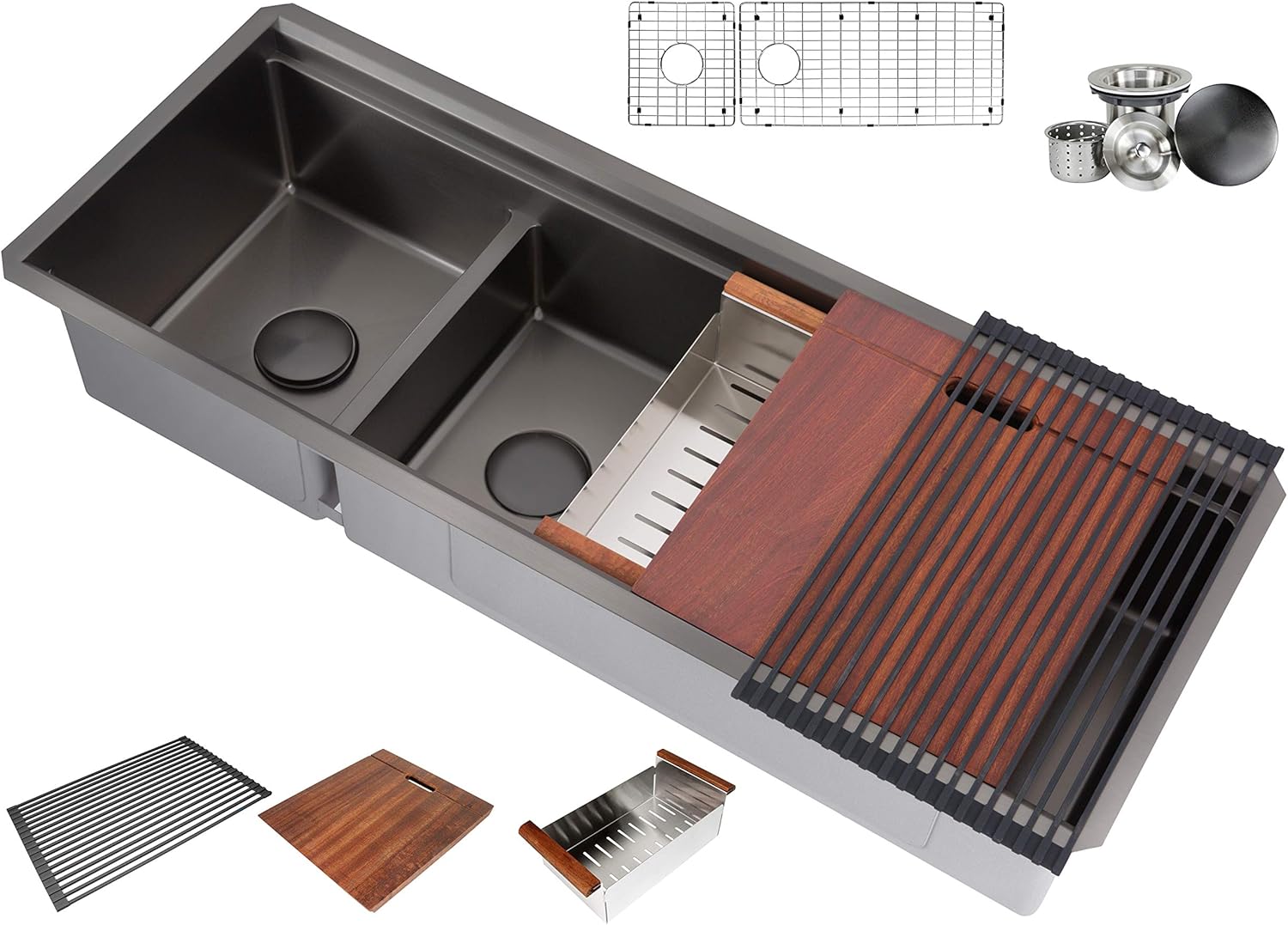 48 Inch Double Bowl Ariel Enthous Workstation Undermount 16 Gauge