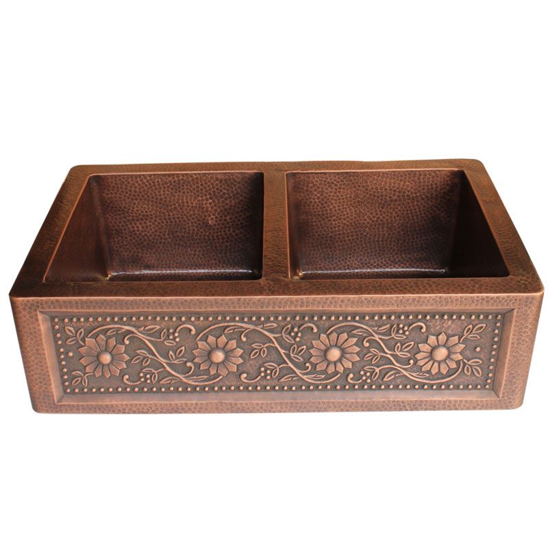 Double Bowl Petal Front Apron Copper Kitchen Sink Coppersmith