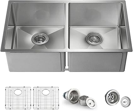 Kibi 33 Inch Handcrafted Undermount Double Bowl 16 Gauge Stainless