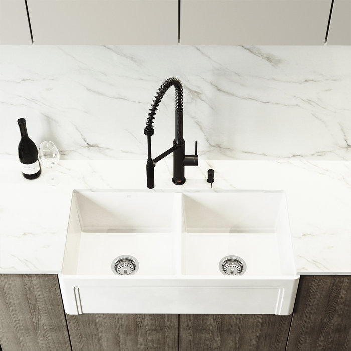 Vigo Vgra3618bl 36 Inch Matte Stone Double Bowl Farmhouse Kitchen Sink