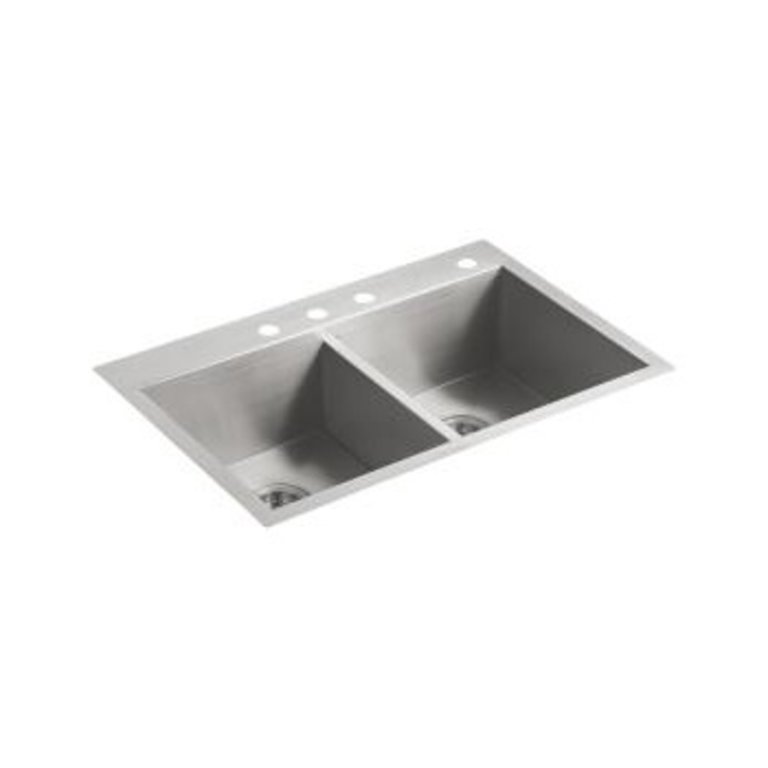 Kohler K3820 Vault 33 X 22 Double Kitchen Sink 4 Faucet Holes
