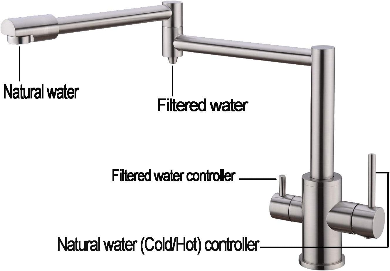 Pot Filler Folding 3 Way Kitchen Faucet With Drinking Water Faucet
