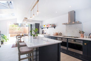 Modern Shaker Style Kitchen With Painted Cupboards And Belfast