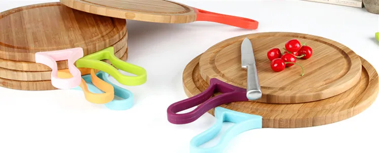 Creative Kitchen Round Bamboo Chopping Board Silicone Handle With